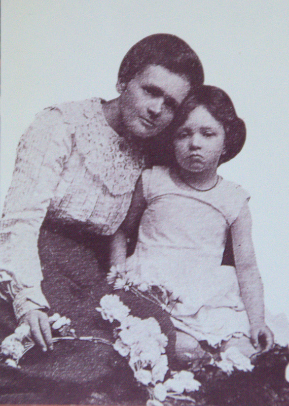 Bilde av Marie og datteren Eve f. 1904, som skrev biografien (Over) og et med begge, Irene er yngst.